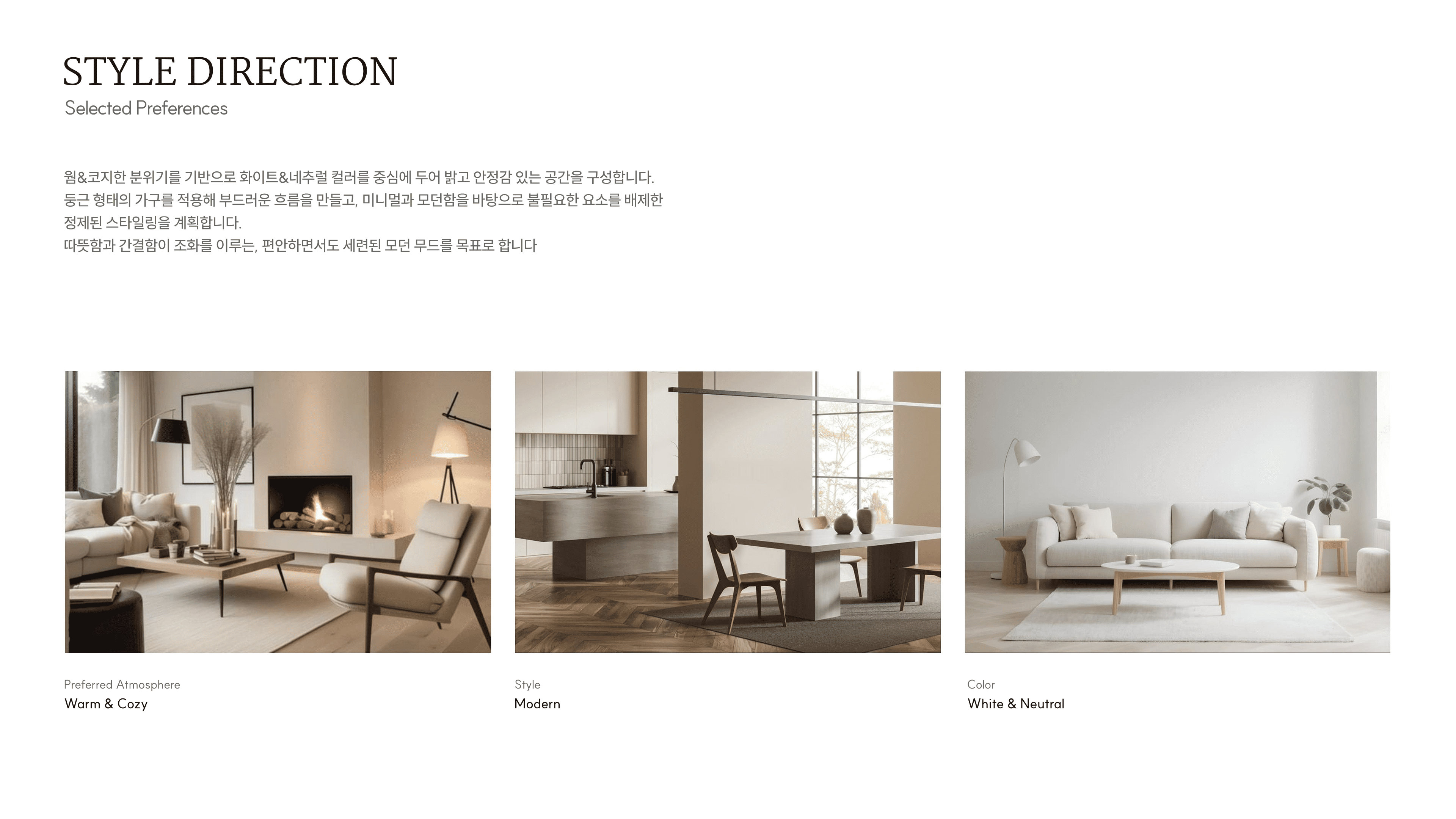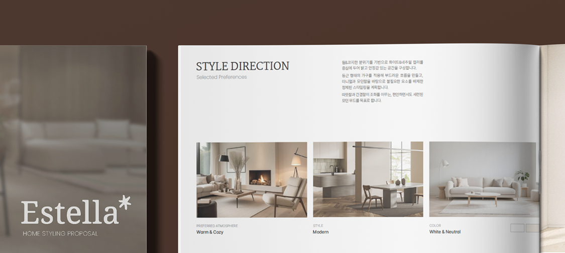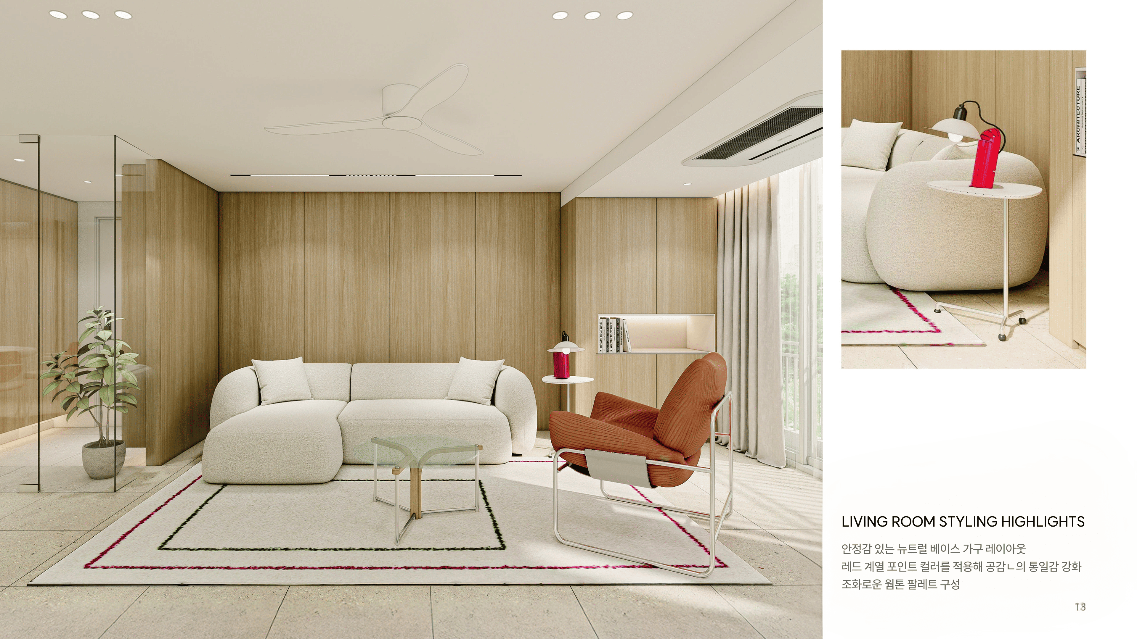 웜&코지한 분위기를 기반으로 화이트&네추럴 컬러를 중심에 두어 밝고 안정감 있는 스타일링을 계획하였습니다.