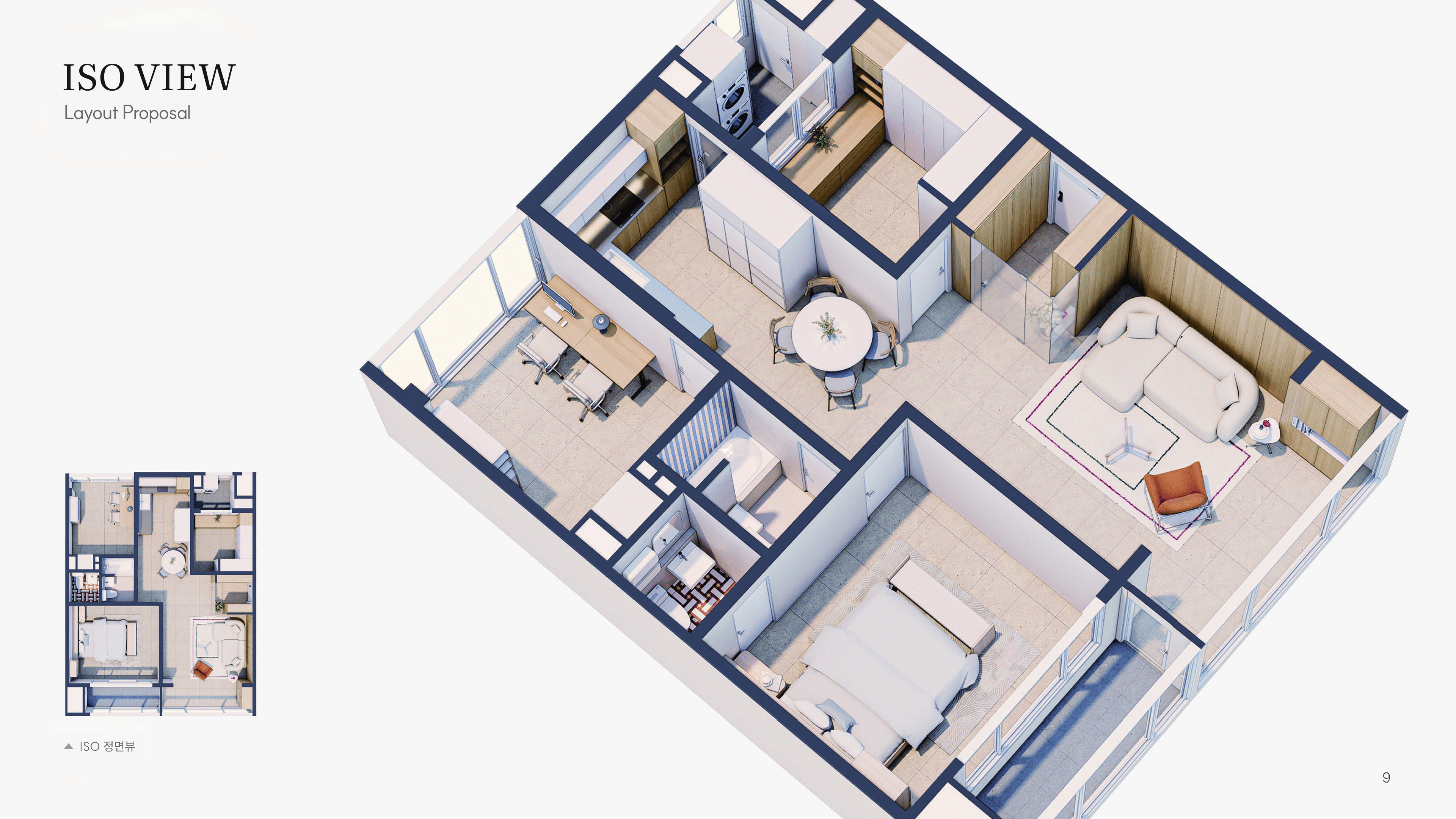 둥근 형태의 가구를 적용해 부드러운 흐름을 만들고, 미니멀과 모던함을 바탕으로 따듯함과 간결함이 조화를 이루는, 세련된 모던 무드로 구성하였습니다.